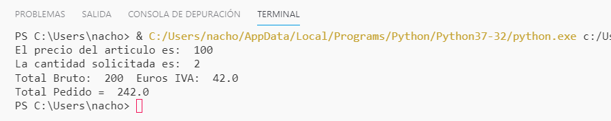 print("Total Bruto: ",total_bruto," Euros IVA: ",euros_iva)